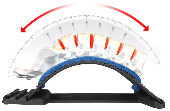 Our back stretcher massager with acupressure provides physical stretching, acupuncture massage and back support for your back, relieving pain in the lumbar, back and sciatic nerve.